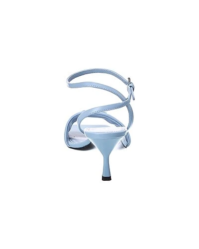 - Logo Leather Sandal in blue quilted leather and steel finish hardware with metal lettering logo