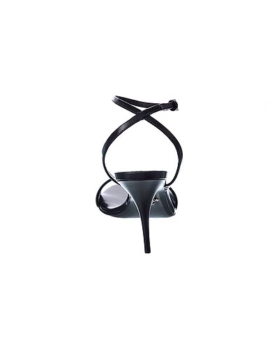 - Logo Leather Sandal in black leather and steel-finish hardware with triangle logo accent