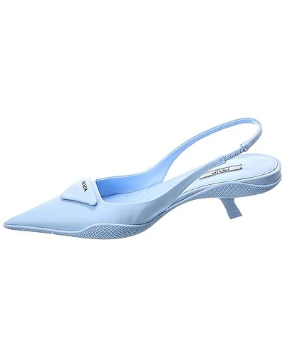 - Logo Nylon Pointy-Toe Slingback Pump in blue nylon with triangle logo accent