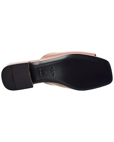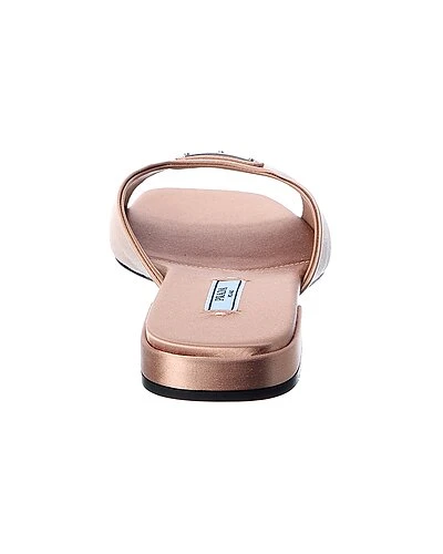- Logo Satin Sandal in nude satin and steel finish hardware with squared peep toe