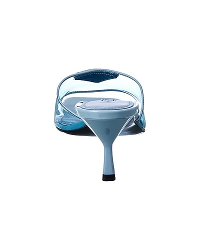 - Logo Vinyl & Patent Sandal in blue patent leather and transparent vinyl and steel finish hardware with logo accent