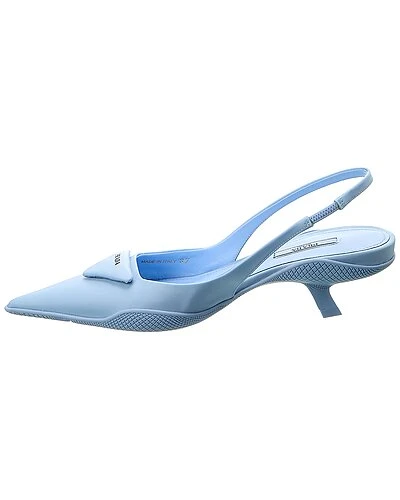 - Nylon Pointy-Toe Slingback Pump in blue nylon gabardine with pointy-toe