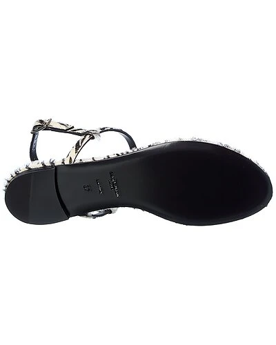 - Cassandra Haircalf Sandal in black and white zebra printed haircalf and silver-tone hardware with monogram accent