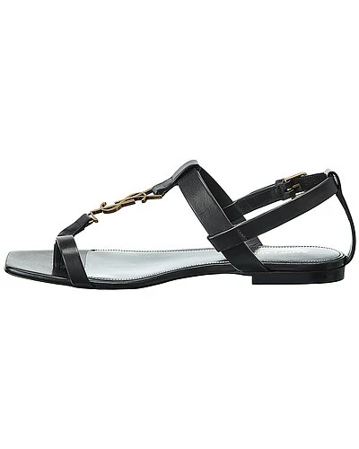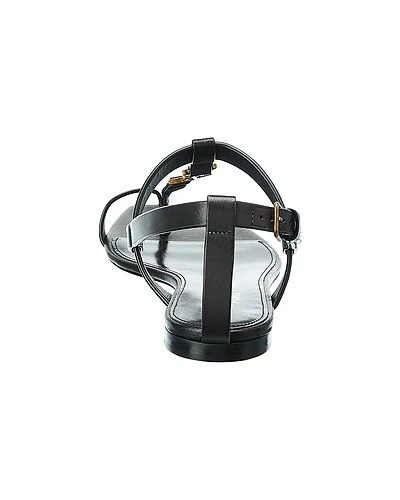- Cassandra Leather Sandal in black leather with gold-tone hardware