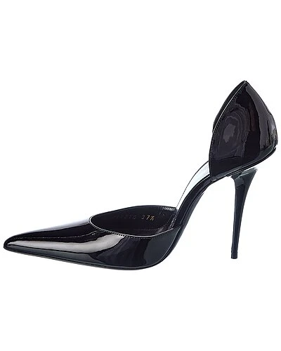 - Kayla 110 Patent Pump in black patent leather with open sides and pointy-toe
