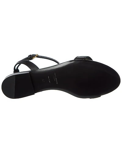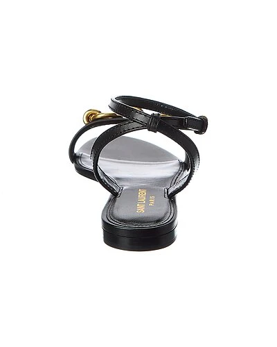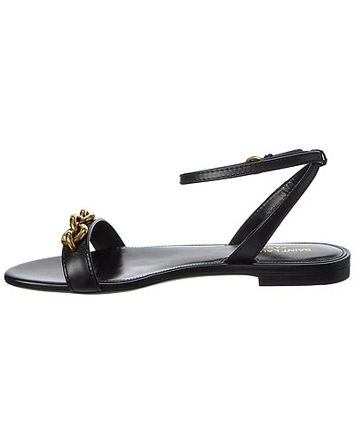 - Le Maillon Leather Sandal in black leather and gold-tone hardware with chain accent