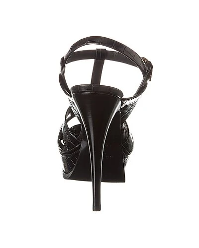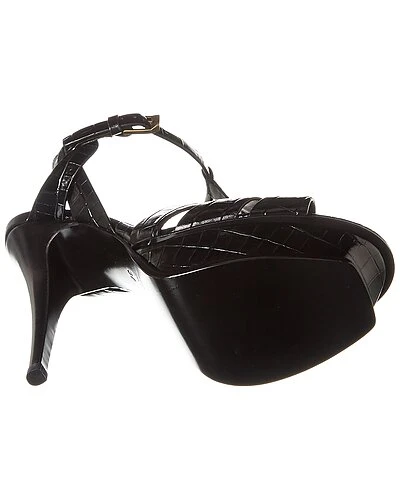 - Tribute 105 Croc-Embossed Leather Platform Sandal in black croc-embossed leather and gold-tone hardware with strappy design