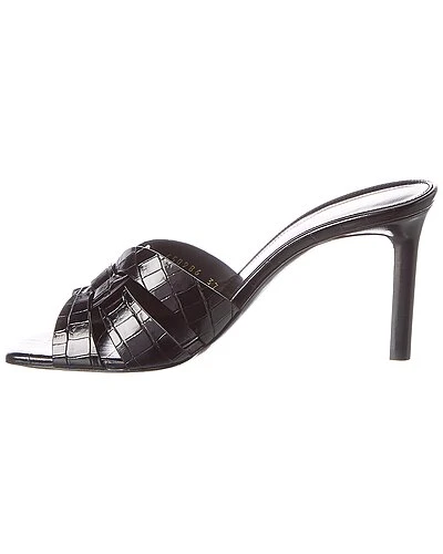 - Tribute 85 Leather Mule in black croc-embossed leather