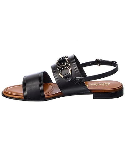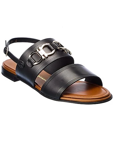 - Chaim 10 Leather Sandal in black leather and gold-tone hardware with gancini details