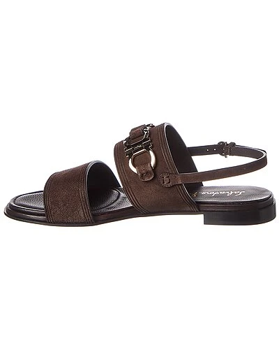 - Chaim Suede Sandal in dark brown suede and gold-tone hardware with Gancini details