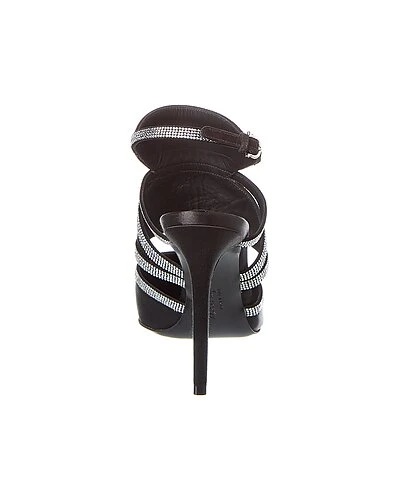 - Delianne X Satin Pump in black satin and silver-tone hardware with rhinestone embellishments