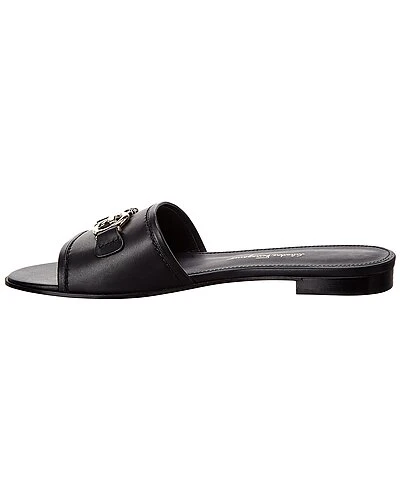 - Rhodes Leather Sandal in black leather with gold-tone Gancini details