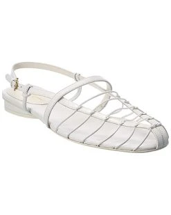 - Shay Leather Sandal in white leather and gold-tone hardware with strappy design and Gancini buckle