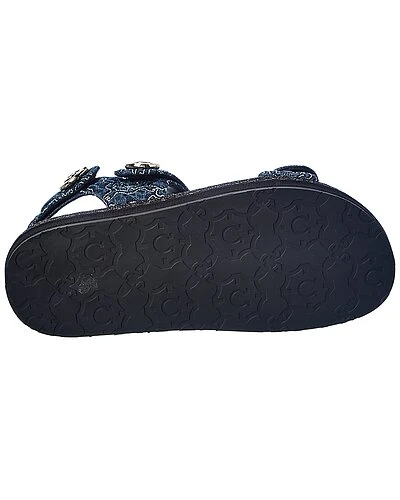 - Kalie Gal Denim Platform Sandal in blue denim quilted textile and gold-tone hardware with metallic and grosgrain trim