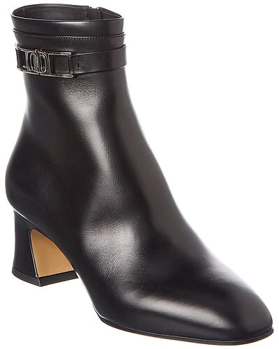 - Rego Leather Bootie in black leather and silver-tone hardware with logo accent and curved heel