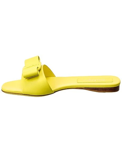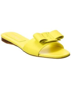 - Vicky Leather Sandal in canary yellow leather with bow detail