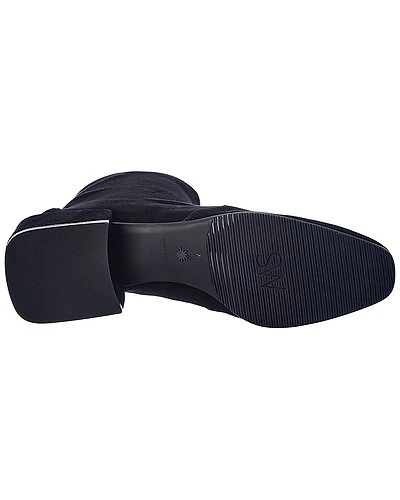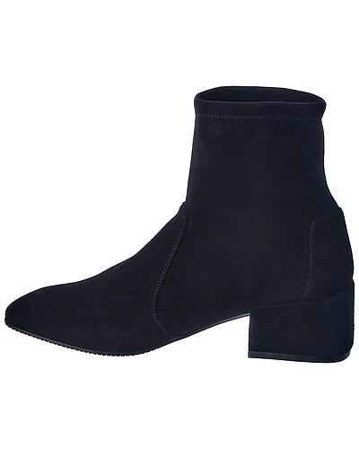 - Accordion Suede Bootie in black suede with square heel