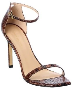- Amelina 95 Snake-Embossed Leather Sandal in almond snake-embossed leather and gold-tone hardware with squared toe