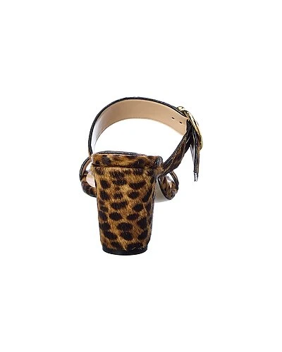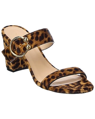 - Belinda 75 Haircalf Slide Sandal in leopard haircalf and gold-tone hardware with round buckle accent