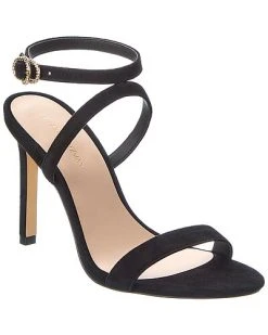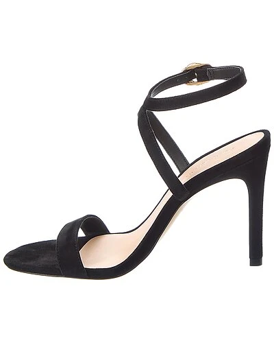 - Crystal Buckle 95 Suede Sandal in black suede and gold-tone hardware with crystal-embellished buckle