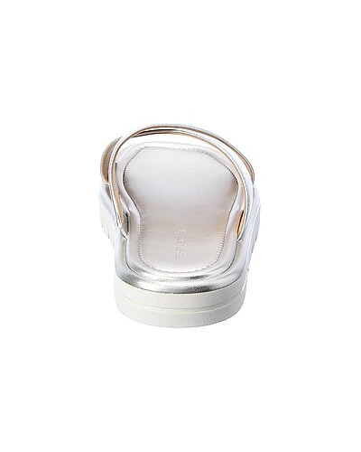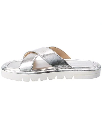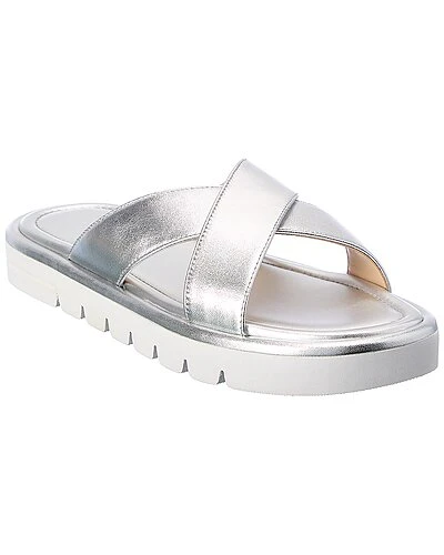 - Elodie Cross Leather Sandal in silver leather with crisscross straps