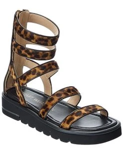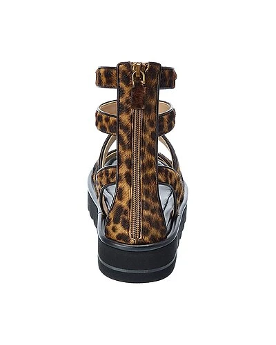 - Gala Lift Haircalf Sandal in cheetah haircalf and gold-tone hardware with strappy design