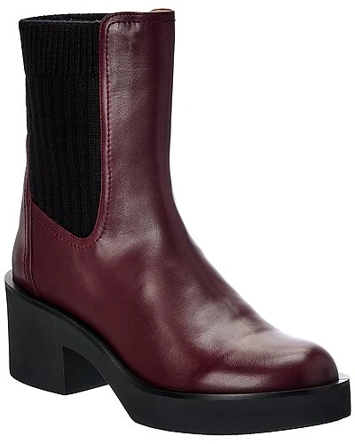 - Gotham Knit & Leather Bootie in burgundy leather with ribbed knit gore