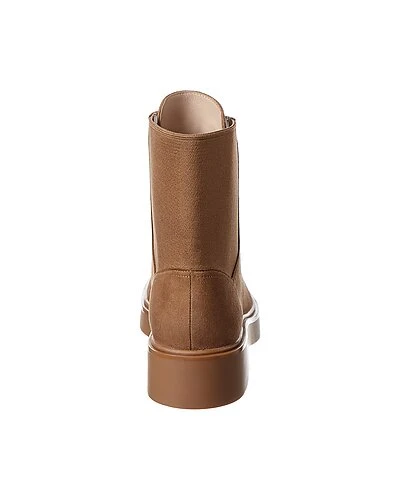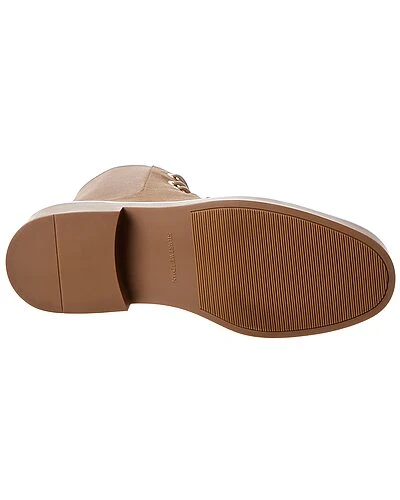 - Henley Suede Bootie in camel suede and gold-tone hardware with elasticized panel