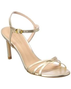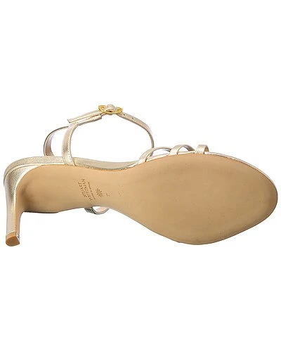 - Starla 80 Leather Sandal in platinum leather and gold-tone hardware with strappy design