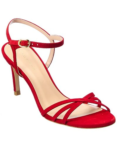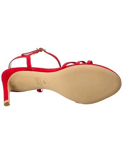 - Starla 80 Suede Sandal in ruby red suede and gold-tone hardware with strappy design