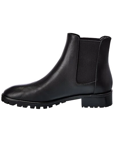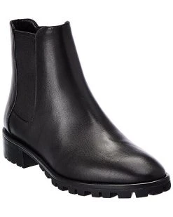 - Laine Leather Bootie in black leather with elasticized gores at sides