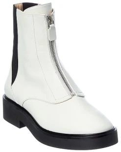 - Lodge Zip Leather Bootie in white leather and silver-tone hardware with elasticized paneling