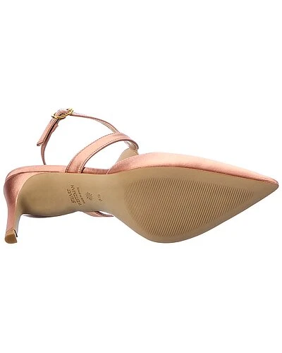 - Mariposa 75 Cutout Satin Pump in peach blush satin and gold-tone hardware with strappy design