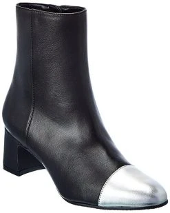 - Milla 60 Leather Bootie in black leather and silver-tone hardware with silver leather cap toe