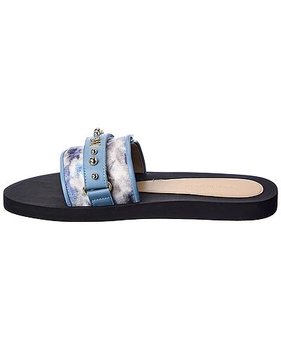 - Superstud Canvas & Leather Slide in ash printed canvas and leather and gold-tone hardware with pearl stud-embellished Velcro strap