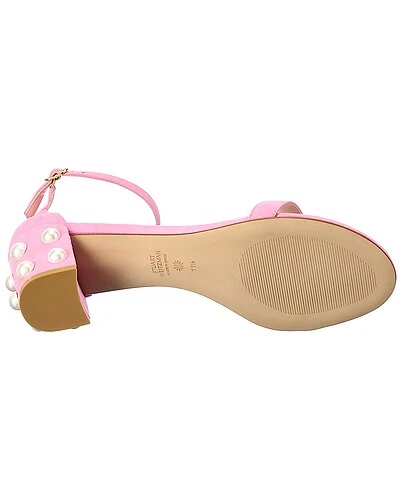 - Simple Pearls Suede Sandal in India pink suede and gold-tone hardware with pearl-embellished heel