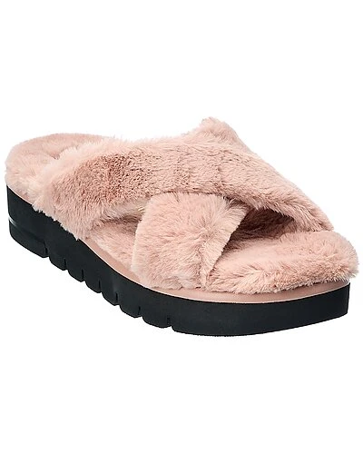 - Roza Lift Chill Slide in pink faux fur with crossover straps