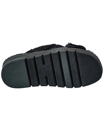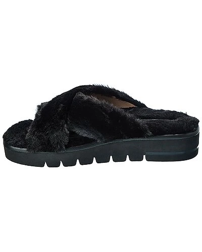 - Roza Lift Chill Slide in black faux fur with crossover straps