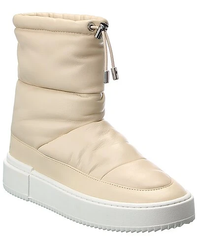 - Ryan Puffer Leather Bootie in oat leather and silver-tone hardware with drawcord accent