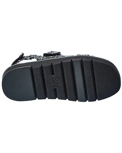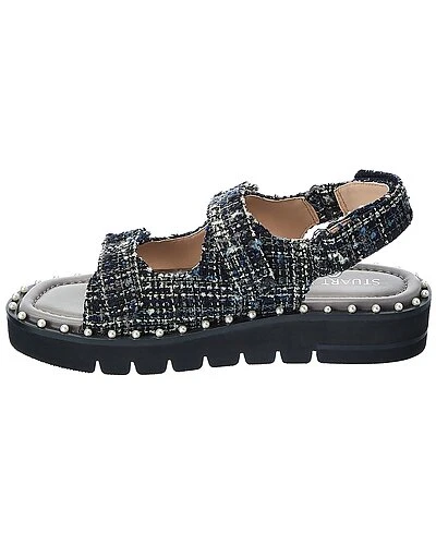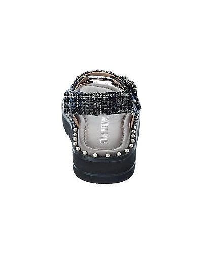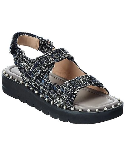 - Zoe Lift Tweed Sandal in flannel tartan tweed and silver-tone hardware with pearl embellishments