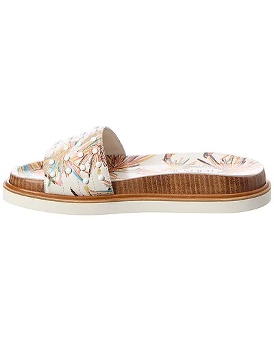 - Gommino Leather Slide in white printed leather with stud embellishments