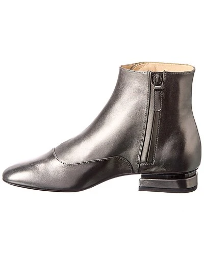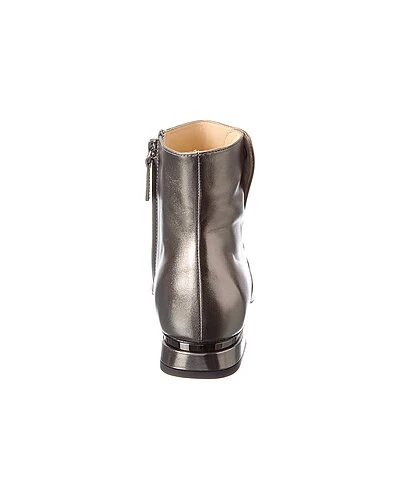 - Leather Bootie in silver leather and silver-tone hardware with snap accents