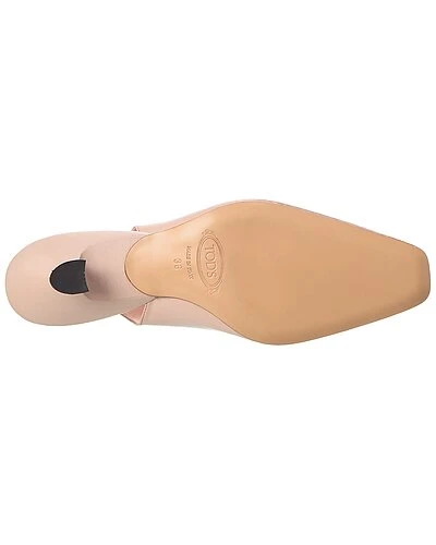 - Leather Slingback Pump in nude leather and gold-tone hardware with squared toe