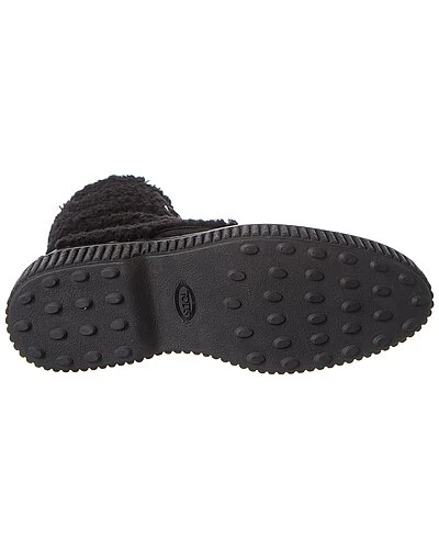- Suede Bootie in black suede and shearling and gold-tone hardware with zipper accent