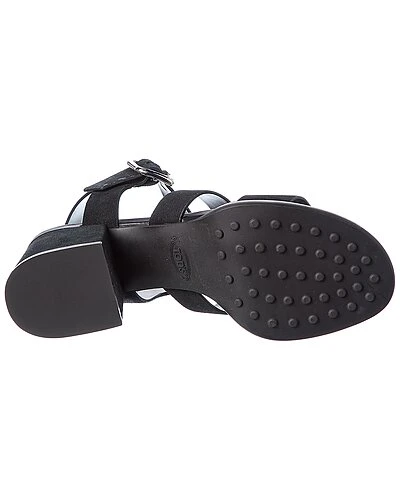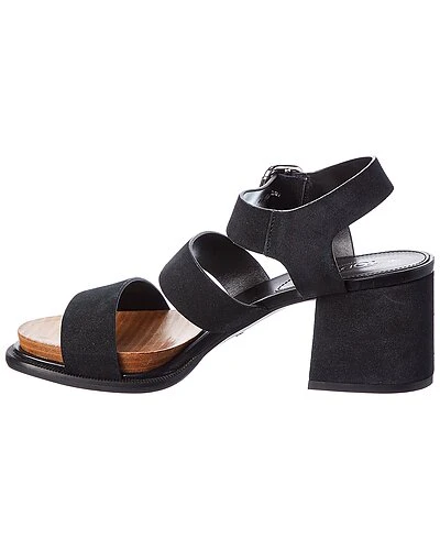 - Suede Sandal in black suede and silver-tone hardware with wooden platform