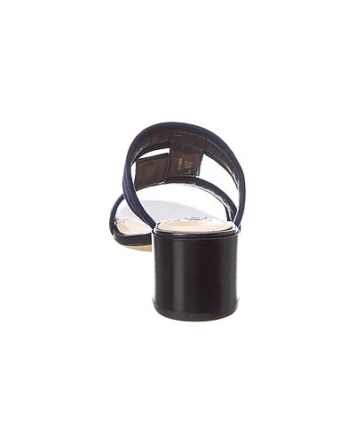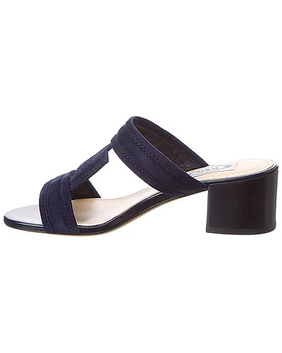 - T Strap Suede Sandal in navy suede with wooden heel