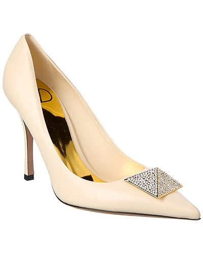 - One Stud 100 Leather Pump in ivory leather and gold-tone hardware with crystal-embellished Roman stud