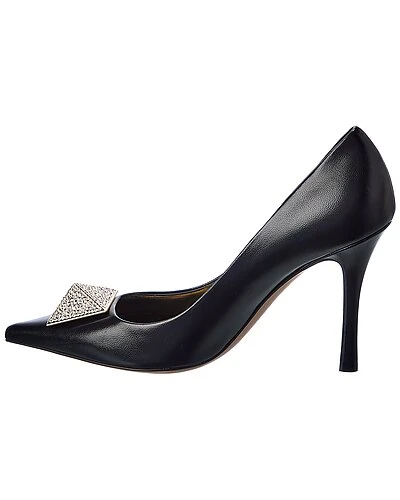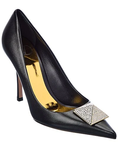 - One Stud 100 Leather Pump in black leather and gold-tone hardware with crystal-embellished Roman stud