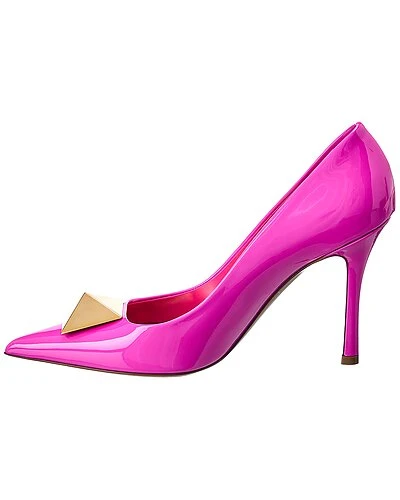 - One Stud 100 Patent Pump in pink patent leather with gold-tone Roman studs