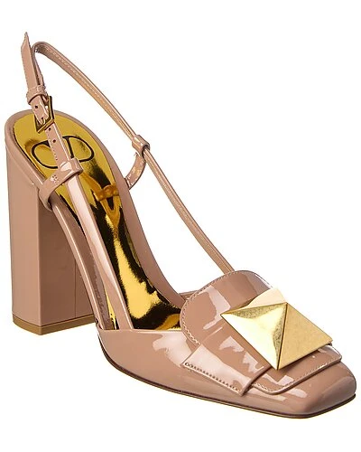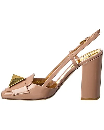 - One Stud 100 Patent Slingback Pump in pink patent leather and gold-tone hardware with Roman studs